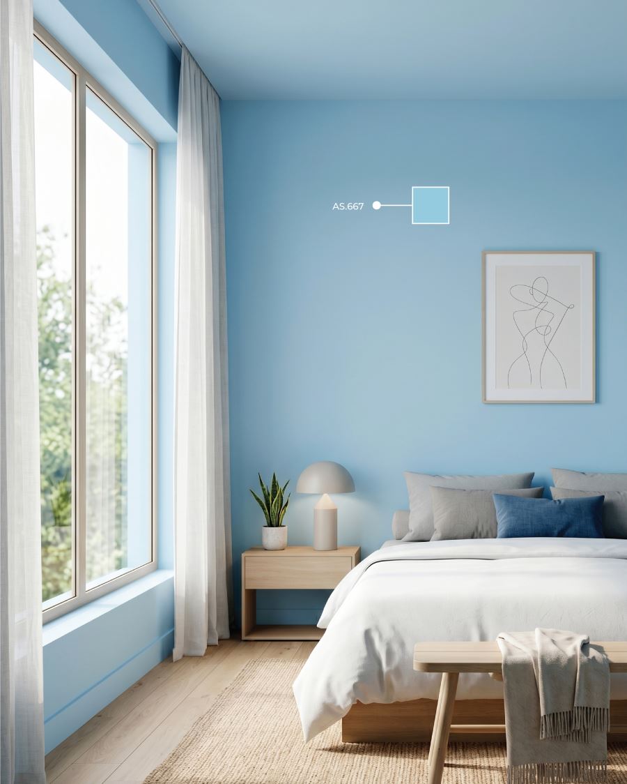 AS.667 - Sắc xanh thiên thanh dịu mát này gợi vẻ yên bình của bầu trời. Nó giúp giải tỏa áp lực, tạo cảm giác không gian rộng mở. Rất lý tưởng cho phòng ngủ, spa hoặc thiết kế tối giản để mang lại sự thư thái.